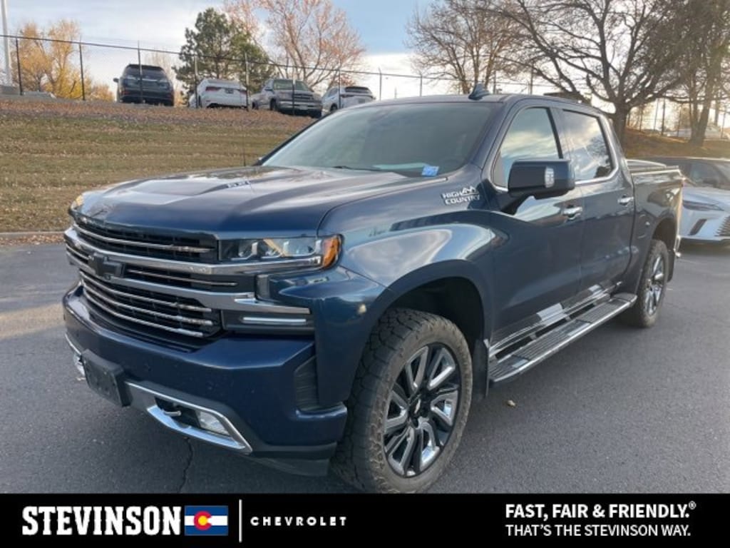 2019 Chevrolet Silverado 1500 High Country All Season Tires, Back up Camera, Cruise Control, Keyless Entry, Leather, Remote Start, Trailer Hitch, USB / Aux Ports, Collision Alert, 10-Speed Automatic, 4WD, Jet Black Leather, 10-Way Power Driver Seat w/Lumbar, 10-Way Power Passenger Seat Adjuster w/Lumbar, 12-Volt Rear Auxiliary Power Outlet, 120-Volt Bed Mounted Power Outlet, 120-Volt Instrument Panel Power Outlet, 170 Amp Alternator, 2nd Row Heated Outboard Seats, 8 Driver Information Center, Advanced Trailering System, All-Weather Floor Liner (LPO), Auto-Dimming Inside Rear-View Mirror, Auxiliary External Transmission Oil Cooler, Bluetooth® For Phone, Chevrolet Connected Access, Chevrolet w/4G LTE, Chevytec Spray-On Black Bedliner, Chrome Assist Steps, Chrome Grille, Chrome Recovery Hooks, Color-Keyed Carpeting Floor Covering, Compass, Deep-Tinted Glass, Driver Memory, Dual Exhaust w/Polished Outlets, Electric Rear-Window Defogger, Electrical Lock Control Steering Column, Electronic Cruise Control, Floor Mounted Console, Following Distance Indicator, Forward Collision Alert, Front Carpeted Floor Mats, Front LED Fog Lamps, Front Pedestrian Braking, HD Radio, HD Rear Vision Camera, Heated Driver & Front Passenger Seats, Heated Steering Wheel, Heavy-Duty Rear Locking Differential, High Country Deluxe, Hitch Guidance, Hitch Guidance w/Hitch View, Integrated Trailer Brake Controller, IntelliBeam Automatic High Beam On/Off, Keyless Open & Start, Lane Change Alert w/Side Blind Zone Alert, Lane Keep Assist w/Lane Departure Warning, Leather Wrapped Steering Wheel, LED Cargo Area Lighting, Low Speed Forward Automatic Braking, Manual Tilt/Telescoping Steering Column, Navigation System, OnStar & Chevrolet Connected Services Capable, Outside Heated Power-Adjustable Mirrors, Painted Mirror Caps, Power Door Locks, Power Front Passenger Windows w/Express Up/Down, Power Front Windows w/Driver Express Up/Down, Power Rear Windows w/Express Down, Power Sliding Rear Window w/Rear Defogger, Power Sunroof, Preferred Equipment Group 3LZ, Rear Carpeted Floor Mats, Rear Cross Traffic Alert, Rear Dual USB Charging-Only Ports, Rear Wheelhouse Liners, Remote Vehicle Starter System, Safety Alert Seat, Safety Package II, SiriusXM Radio, Steering Wheel Audio Controls, Theft Deterrent System (Unauthorized Entry), Trailer Tire Pressure Monitor System, Trailering Package, Ultrasonic Front & Rear Park Assist, Universal Home Remote, Up-Level Rear Seat w/Storage Package, Ventilated Driver & Front Passenger Seats, Wireless Charging. CARFAX One-Owner.