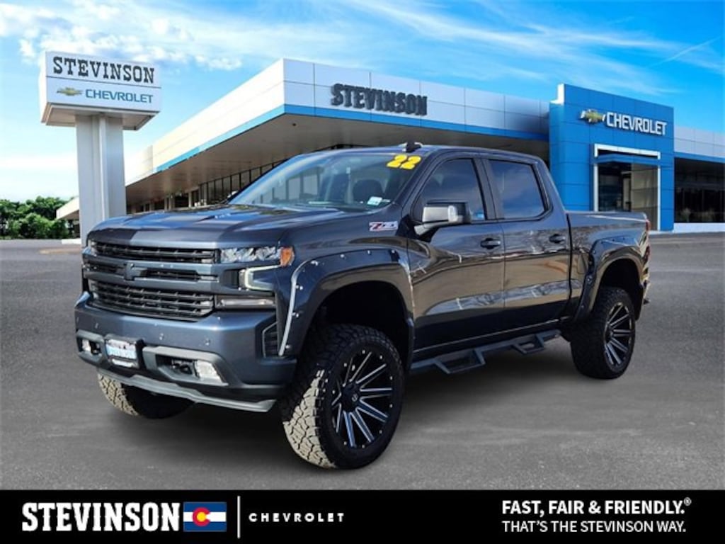 Odometer is 14898 miles below market average! 2022 Chevrolet Silverado 1500 LTD RST All Season Tires, Back up Camera, Cruise Control, Keyless Entry, Leather, Remote Start, Trailer Hitch, USB / Aux Ports, Collision Alert, 10-Way Power Driver Seat w/Lumbar, 12-Volt Rear Auxiliary Power Outlet, 2 USB Ports (First Row), 4.2 Diagonal Color Display Driver Info Center, All-Star Edition, All-Weather Floor Liner (LPO) (AAK), Auto-Locking Rear Differential, Bed Protection Package, Bluetooth® For Phone, Body Color Grille, Chevrolet Connected Access Capable, Chevytec Spray-On Black Bedliner, Cloth Rear Seat w/Storage Package, Color-Keyed Carpeting Floor Covering, Compass, Convenience Package, Convenience Package w/Buckets Seats, Deep-Tinted Glass, Dual Exhaust w/Polished Outlets, Dual-Zone Automatic Climate Control, Electric Rear-Window Defogger, Electronic Cruise Control, EZ Lift Power Lock & Release Tailgate, Floor Mounted Center Console, Front Bucket Seats, Front Frame-Mounted Black Recovery Hooks, Front LED Fog Lamps, Front Rubberized Vinyl Floor Mats, Heated Driver & Front Outboard Passenger Seats, Heated Steering Wheel, Heavy-Duty Air Filter, High Gloss Black Mirror Caps, Hill Descent Control, Hitch Guidance, Keyless Open & Start, Lane Change Alert w/Side Blind Zone Alert, Leather Wrapped Steering Wheel, LED Cargo Area Lighting, Manual Tilt/Telescoping Steering Column, Off-Road Suspension, OnStar & Chevrolet Connected Services Capable, Perimeter Lighting, Power Door Locks, Power Front Windows w/Driver Express Up/Down, Power Front Windows w/Passenger Express Down, Power Rear Windows w/Express Down, Preferred Equipment Group 1SP, Rear 60/40 Folding Bench Seat (Folds Up), Rear Cross Traffic Alert, Rear Dual USB Charging-Only Ports, Rear Rubberized-Vinyl Floor Mats, Rear Vision Camera, Rear Wheelhouse Liners, Remote Vehicle Starter System, Safety Package, Standard Tailgate, Steering Wheel Audio Controls, Theft Deterrent System (Unauthorized Entry), Trailering Package, Ultrasonic Front & Rear Park Assist, Wi-Fi Hot Spot Capable, Z71 Off-Road & Protection Package, Z71 Off-Road Package. CARFAX One-Owner.We're very proud of being in business for over a half-century selling and servicing cars to generations of satisfied Coloradans. Thank you, Colorado, for allowing us to serve your automotive needs for the last 60 years. We look forward too many more years of providing you with the best experience when buying or servicing your Chevrolet. Shop us 24/7 at www.stevinsonchevrolet.com Lakewood, Golden, Aurora, Arvada, Denver, Highlands Ranch, Lone Tree, Morrison, Pine, Windsor, Loveland, Brighton, Broomfield, Parker, Englewood, Littleton, Evergreen, Castle Rock, Westminster, Central City, Boulder, Thornton, Greenwood Village, and BENNETT!