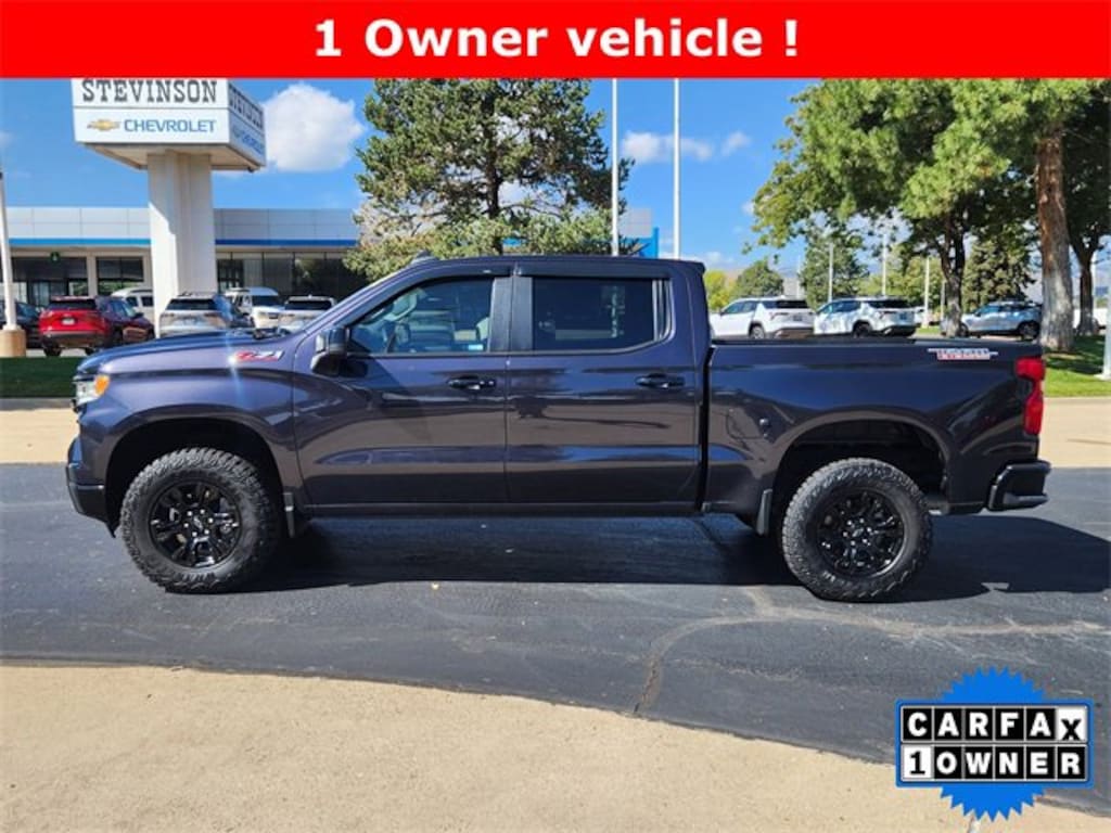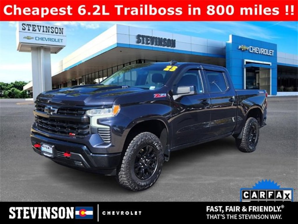 2023 Chevrolet Silverado 1500 LT Trail Boss All Season Tires, Back up Camera, Cruise Control, Keyless Entry, Trailer Hitch, USB / Aux Ports, Collision Alert, 10-Speed Automatic, 4WD, Black Cloth, 10-Way Power Driver Seat w/Lumbar, 12.3 Multicolor Reconfigurable Digital Display, 120-Volt Bed Mounted Power Outlet, 120-Volt Instrument Panel Power Outlet, 6-Speaker Audio System, All-Weather Floor Liner (LPO) (AAK), Auto-Locking Rear Differential, Bluetooth® For Phone, Chevrolet Connected Access Capable, Color-Keyed Carpeting Floor Covering, Compass, Convenience Package, Deep-Tinted Glass, Dual Rear USB Ports (Charge Only), Dual-Zone Automatic Climate Control, Electric Rear-Window Defogger, Electrical Steering Column Lock, Electronic Cruise Control, EZ Lift Power Lock & Release Tailgate, Front LED Fog Lamps, HD Rear Vision Camera, Heated Driver & Front Outboard Passenger Seats, Heated Power-Adjustable Outside Mirrors, Heated Steering Wheel, Heavy-Duty Air Filter, High Gloss Black Mirror Caps, Hill Descent Control, Hitch Guidance, Inside Rear-View Mirror w/Tilt, Keyless Open & Start, LED Cargo Area Lighting, OnStar & Chevrolet Connected Services Capable, Performance Red Recovery Hooks, Power Front Windows w/Driver Express Up/Down, Power Front Windows w/Passenger Express Down, Power Rear Windows w/Express Down, Preferred Equipment Group 2LT, Rear 60/40 Folding Bench Seat (Folds Up), Remote Vehicle Starter System, SiriusXM w/360L, Standard Tailgate, Steering Wheel Audio Controls, Suspension Package, Theft Deterrent System (Unauthorized Entry), Trailering Package, Wi-Fi Hot Spot Capable, Wireless Phone Projection, Wrapped Steering Wheel. CARFAX One-Owner.
