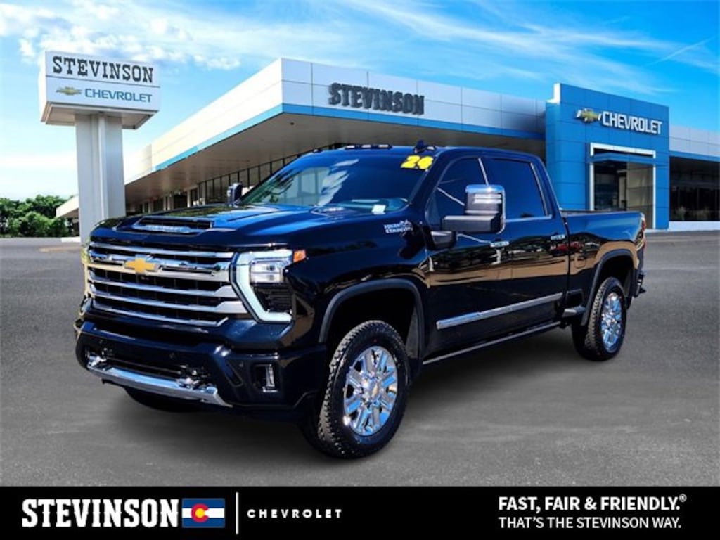 2024 Chevrolet Silverado 2500HD High Country All Season Tires, Back up Camera, Cruise Control, Heated Seats, Heated and Cooled Seats, Keyless Entry, Remote Start, Trailer Hitch, USB / Aux Ports, Collision Alert, 10-Speed Automatic, 4WD, Jet Black/Nightshift Blue Leather, 120-Volt Bed Mounted Power Outlet, 120-Volt Interior Power Outlet, 15 Diagonal Multicolor Head-Up Display, 170 Amp Alternator, 6 Rectangular Chromed Tubular Assist Steps, Adaptive Cruise Control, Auto-Dimming Inside Rear-View Mirror, Bed View Camera w/2 Trailer Camera Provisions, Black Chevytec Spray-On Bedliner, Bluetooth® For Phone, Chevrolet Connected Access Capable, Chrome Door Handles, Chrome Mirror Caps, Color-Keyed Carpeting Floor Covering, Compass, Deep-Tinted Glass, Electric Rear-Window Defogger, Electronic Cruise Control w/Set & Resume Speed, Front Carpeted Floor Mats, Front Chrome Recovery Hooks, Front LED Fog Lamps, Front Rain-Sensing Wipers, Gooseneck/5th Wheel Package (DISC), Gooseneck/5th Wheel Prep Package, Heated 2nd Row Outboard Seats, Heated Steering Wheel, High Country Premium Package, Hill Descent Control, Hitch Guidance w/Hitch View, In-Vehicle Trailering App System, Keyless Open & Start, LED Cargo Area Lighting, Manual Tilt & Telescoping Steering Column, Off-Road Suspension, OnStar & Chevrolet Connected Services Capable, Polished Exhaust Tip, Power Door Locks, Power Front Windows w/Driver Express Up/Down, Power Front Windows w/Passenger Express Up/Down, Power Rear Windows w/Express Down, Power Sliding Rear Window w/Defogger, Power Sunroof, Preferred Equipment Group 3LZ, Push Button Start, Pwr Up/Down Tailgate Function w/Pwr Lock & Release, Rear Camera Mirror, Rear Carpeted Floor Mats, Rear Cross Traffic Alert, Rear Wheelhouse Liners, Remote Vehicle Starter System, SiriusXM w/360L, Standard Tailgate, Steering Wheel Audio Controls, Suspension Package, Technology Package, Trailer Camera Provisions, Ultrasonic Front & Rear Park Assist, Unauthorized Entry Theft-Deterrent System, Universal Home Remote, Up-Level Rear Seat w/Storage Package, Wi-Fi Hotspot Capable, Wireless Charging, Wireless Phone Projection, Wrapped Steering Wheel, Z71 Off-Road Package.