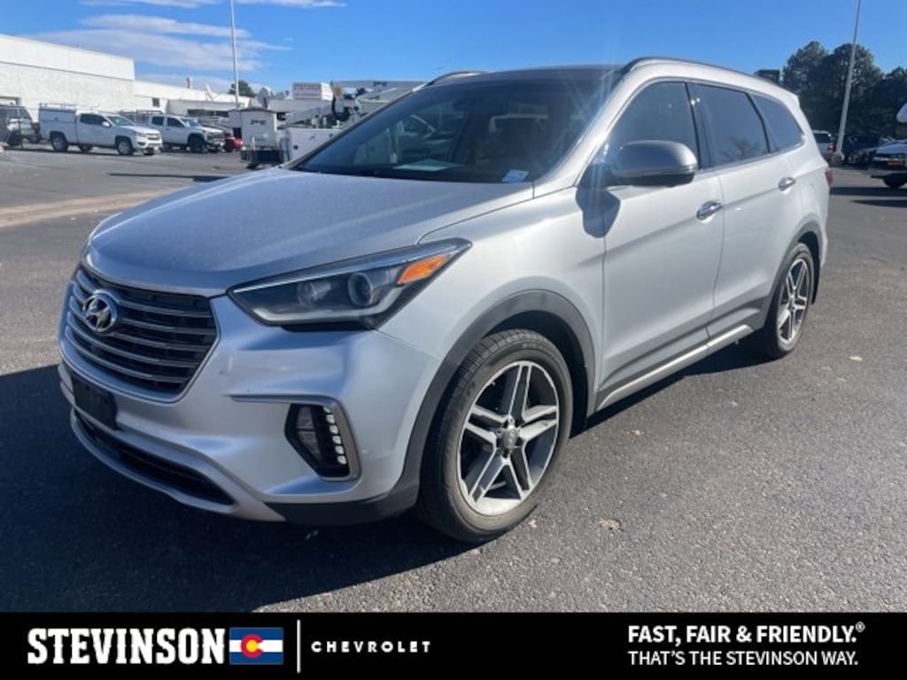 2018 Hyundai Santa Fe Limited Ultimate All Season Tires, Back up Camera, Cruise Control, Keyless Entry, Leather, USB / Aux Ports, Collision Alert, AWD, Gray Leather, Automatic Emergency Braking, Cargo Package, Dynamic Bending Light, Electronic Parking Brake, High Beam Assist, High-Intensity Discharge Headlamps, Lane Departure Warning System, Limited Ultimate Tech Package 04, Option Group 04, Smart Cruise Control. CARFAX One-Owner.We're very proud of being in business for over a half-century selling and servicing cars to generations of satisfied Coloradans. Thank you, Colorado, for allowing us to serve your automotive needs for the last 60 years. We look forward too many more years of providing you with the best experience when buying or servicing your Chevrolet. Shop us 24/7 at www.stevinsonchevrolet.com Lakewood, Golden, Aurora, Arvada, Denver, Highlands Ranch, Lone Tree, Morrison, Pine, Windsor, Loveland, Brighton, Broomfield, Parker, Englewood, Littleton, Evergreen, Castle Rock, Westminster, Central City, Boulder, Thornton, Greenwood Village, and BENNETT!