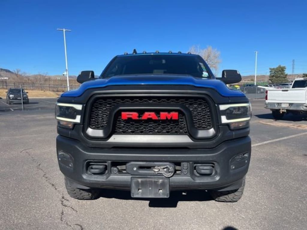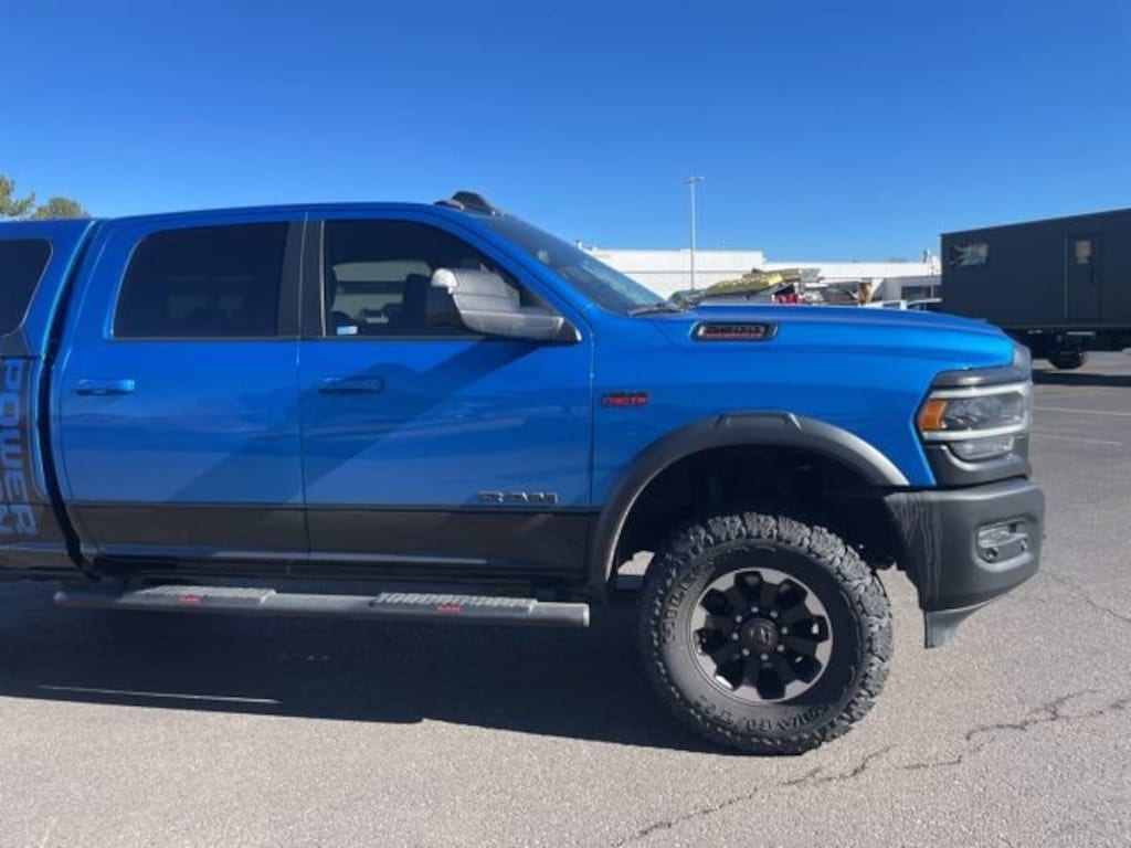 The exterior of this Power Wagon is dressed in a striking Blue hue, complemented by the Black Tubular Side Steps and Spray-In Bedliner. Step inside and you'll be greeted by a well-appointed cabin, featuring premium amenities such as Heated Second Row Seats, Power Adjustable Pedals with Memory, and a Heated Steering Wheel. The Uconnect 12.0 infotainment system with Navigation and 12-inch Touchscreen Display keeps you connected and entertained on the go.